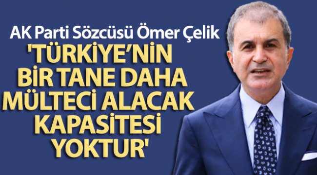 AK Parti Sözcüsü Ömer Çelik, “Türkiye’nin bir tane daha fazla mülteci alacak, bu yükü kaldıracak bir kapasitesi yoktur. Devletler adına konuşan siyasetçiler bilsinler, Türkiye bir toplama kampı değildir, Türkiye bir göçmen kampı değildir. Burası yolgeçen hanı da değildir” dedi....