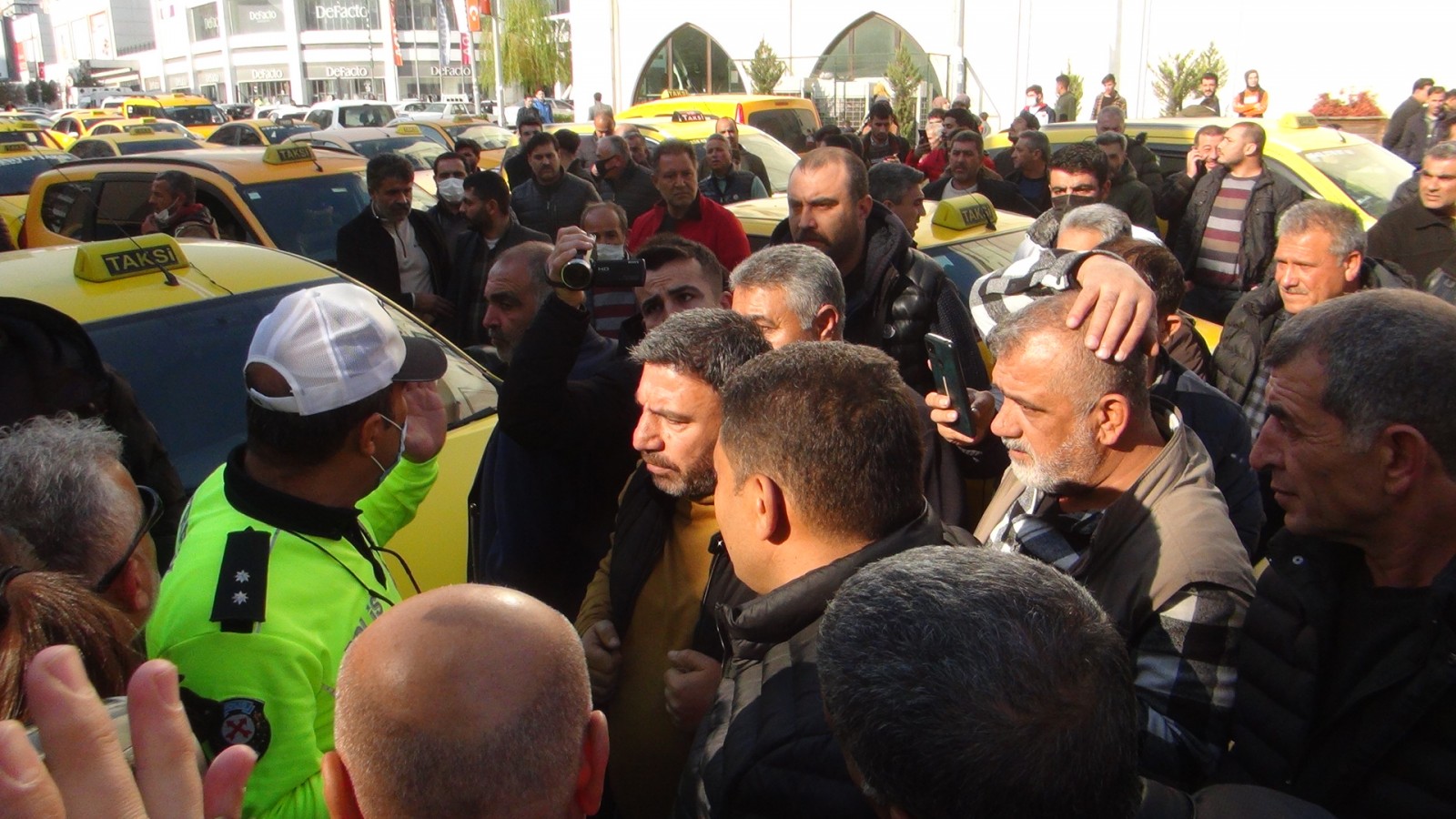Taksiciler, Şanlıurfa Büyükşehir Belediyesince verilen taksi duraklarının iptal edilmesi ile taksimetre ücretlerine istedikleri zammın verilmemesini protesto etti.