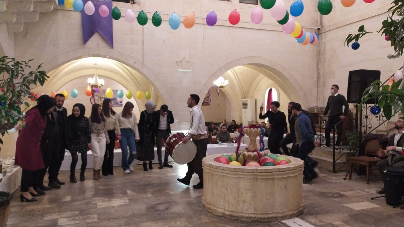 Koronavirüs salgını nedeniyle geçtiğimiz yıl yeni yılı evinde karşılayan Şanlıurfalılar bu yıl dışarıya adeta akın etti. Bazıları yeni yılı evde kutlamayı tercih ederken, çoğu kişi de eğlence mekanlarına gitti. O mekanlar Şanlıurfa'da kentin simgesi olan konuk evleri oldu. Urfa yemekleri ve çiğköfte yenilen mekanlarda davullu zurnalı eğlence düzenlendi. Vatandaşlar halay çekerek doyasıya eğlendi.