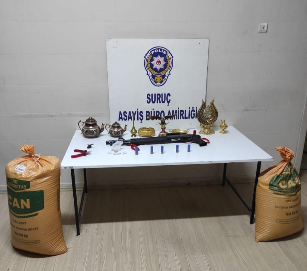 Ekiplerin evde yapmış olduğu geniş çaplı aramalarda 8 parça süs eşyası, 1 adet yan keski, 1 adet Hera marka 140761 seri numaralı otomatik tüfek ve 5 adet kartuş el konuldu. Aramalarda M .C. isimli şahsın beyanında bir işyerinden çalınan 2 çuval buğdayı ise A.O isimli şahsa süs eşyalarının bir kısmını H.A şahıslara sattığını tespit etti.