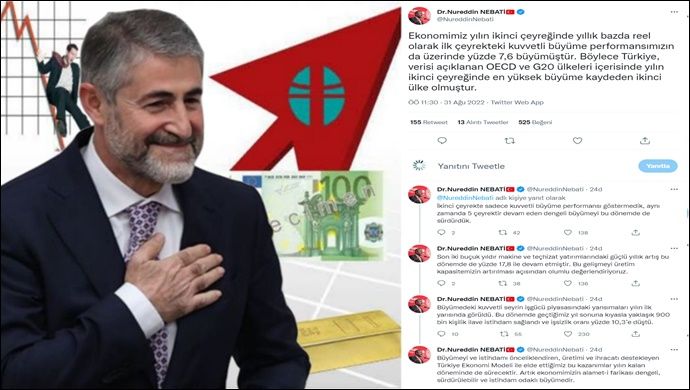Hazine ve Maliye Bakanı Nureddin Nebati, sosyal medya hesabından Türkiye ekonomisinin yılın ikinci çeyreğindeki büyümesi ile ilgili açıklamalarda bulundu.