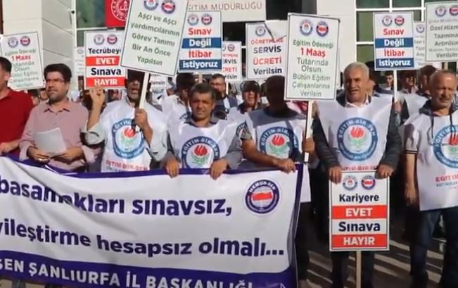 Eğitim-Bir-Sen Şanlıurfa Şubesi, eğitim sorunları, kariyer sınavları ve promosyonda yaşanan sorunlarla ilgili basın açıklaması düzenledi.