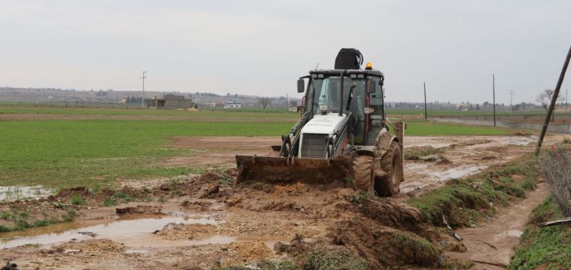 Karaköprü Belediyesi önceki gün yoğun yağışla birlikte yaşanan sel felaketi sonrası merkezde ve kırsalda vatandaşların sorun yaşamaması için biriken çamur ve malzemeyi temizliyor