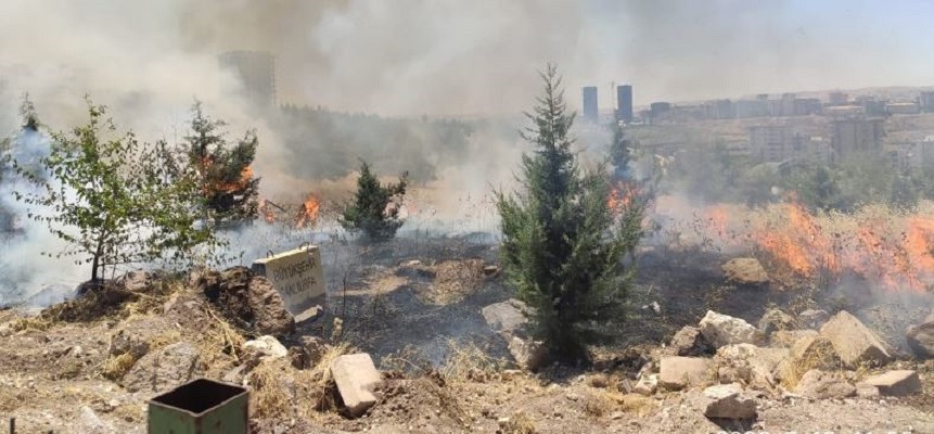 Şanlıurfa'nın Karaköprü bölgesinde ki ormanlık alanda yangın
