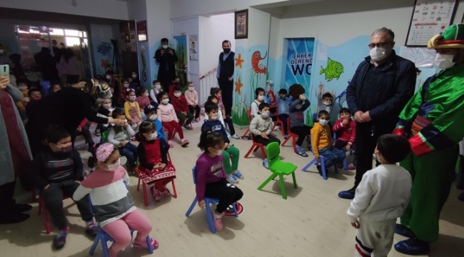 Büyükşehir Belediyesi, Eyyübiye ilçesi Merkez Akabe Öğretmen Lamia Özdemir Anaokulu öğrencileri için Hacivat-Karagöz gölge oyununu sahneledi....