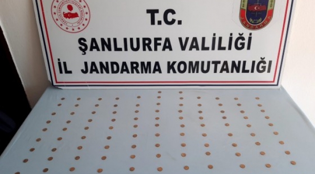 İl Jandarma Komutanlığı Kaçakçılık ve Organize Suçlarla Mücadele (KOM) Şubesi ekipleri, Viranşehir Cumhuriyet Başsavcılığınca yürütülen soruşturma kapsamında tarihi eser kaçakçılarına yönelik bir adrese operasyon düzenledi. Evde yapılan aramalarda Bizans dönemine ait olduğu tespit edilen 110 altın sikke ele geçirildi. Olayla ilgili 1 kişi gözaltına alınırken, sikkeler ise Şanlıurfa Müze Müdürlüğüne teslim edildi.