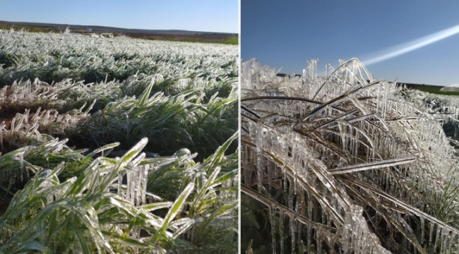 Şanlıurfa’da, kış mevsiminin kurak geçmesinden dolayı tarlalar çiftçiler tarafından sulanıyor. Suruç ilçesinde gece vakti yağmurlama sistemiyle tarlalarını sulayan çiftçiler, sabah gördükleri manzara karşısında şok oldu. Sabah tarlalarına giden çiftçiler, gece vakti yaşanan soğuk havadan dolayı ekinlerinin don tuttuğunu gördü. Don nedeniyle maddi anlamda zarara uğrayan çiftçiler, daha önce böyle bir olayla hiç karşılaşmadıklarını belirttiler.